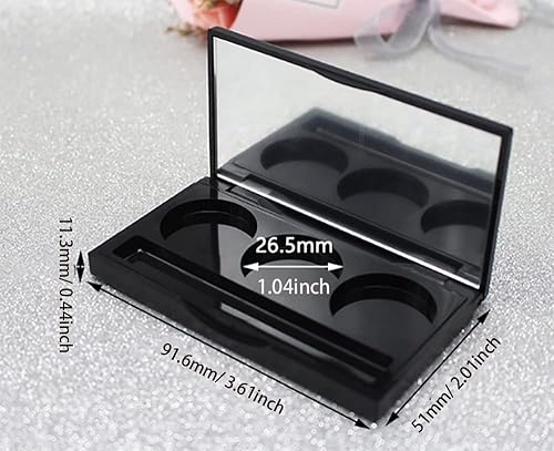 Plastic Eyeshadow Palette Empty Makeup Palette with Mirror 3 Grids Round Eyeshadow Pans Case with 26.5mm Plastic Pan Eye Shadow Case Box for Eyeshadow Blush Lipstick Powder Pigment Black 6 Pack