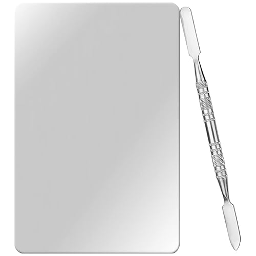 1set Stainless Steel Makeup Mixing Plate Spatula Professional Cosmetic Palette for Foundation and Nail Art Easy to Clean and Custom Mixing Tool