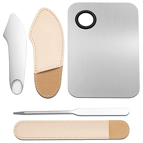 Stainless Steel Cosmetic Makeup Palette, Professional Cosmetic Mixing Makeup Palette Spatula Makeup Artist Tool, Beauty Salon Color Cream Mixing Palette With A Spatula Makeup Nail Art Palette Multico