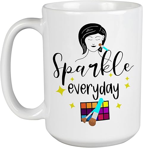 Sparkle Everyday with Eyeshadow Palette, Brushes & Woman Design - Beauty Themed Merch for Makeup Artist or Cosmetologist, Gift for Makeup Lovers & Beauticians, White Mug 15oz