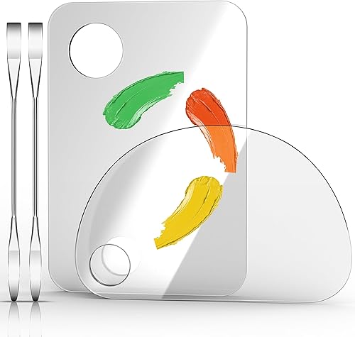 Makeup Mixing Palette, 2 Pcs Acrylic Handheld Cosmetic Palette with 2 Pcs Spatula Tool, Clear Nail Art Manicure Palette Makeup Palette Tray for Mixing Foundation Eye Shadow Cremes Powders
