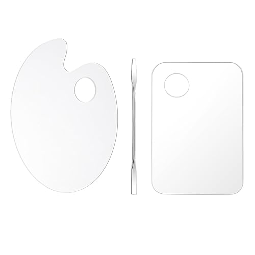 2 Pcs Acrylic Cosmetic Makeup Palette + 1 Pc Makeup Spatula, Makeup Mixing Tray Apply for Foundation Nail Art Beauty Salon Color Cream Liquid Mixing Art Palette