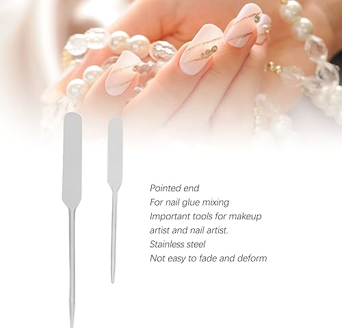 2pcs Makeup Foundation Mixing Spatula, Cake Cream Butter Spatulas with Long Handle, Double Ended Stainless Steel Nail Glue Stirrer Stick, Resin Craft Stirring Mixing Scraper Tool
