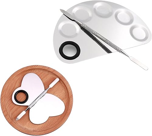 Operitacx 4pcs Stainless Steel Mixing Palette for Makeup Nail Cosmetic Blending Trays Spatula for Foundation Pigment Mixing