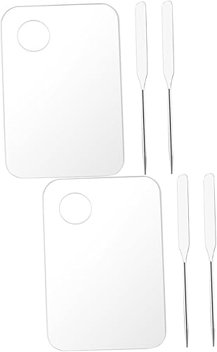 FRCOLOR 4sets Acrylic Makeup Mixing Palette Spatula for Foundation Eyeshadow Nail Art Lightweight Mixing Tray for Easy Use and Carrying