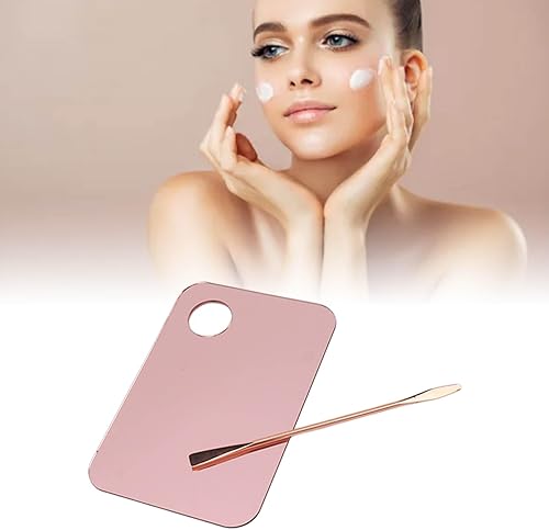 FRCOLOR 2sets Stainless Steel Makeup Mixing Plate with Spatula Portable Cosmetic Blending Tray for Foundation Nail Pigments Easy to Clean Lightweight for Custom Color Mixing