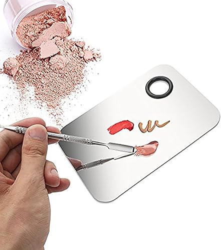 Cosmetics Makeup Mixing Palette, Makeup Mixing Plate Stainless Steel Professional Pigment Blending Palette Spatula Rectangle Shape