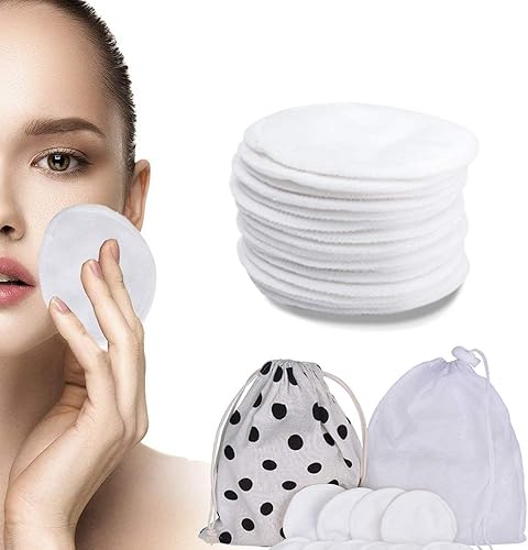 Reusable Makeup Remover Pads, 16 PCS Organic Bamboo Cotton Rounds Reusable Cotton Pad Face Cleansing Cloths Toner Pads Facial Makeup Pad with Laundry Bag & Storage Bag