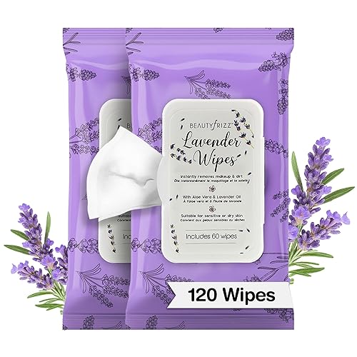 BeautyFrizz Lavender Face Wipes - 120 pcs - Gentle Makeup Remover Wipes for Women - Facial Cleansing Wipe with Aloe, Castor, Vitamin A and E - Extra Soft - Moisturizing