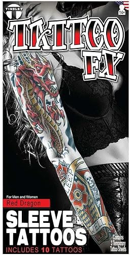Red Dragon Sleeve Tattoo Set - Ultra Realistic, Easy to Apply 3-Piece Design by Academy Award Winner, Perfect for Cosplay, Festivals, and Self-Expression