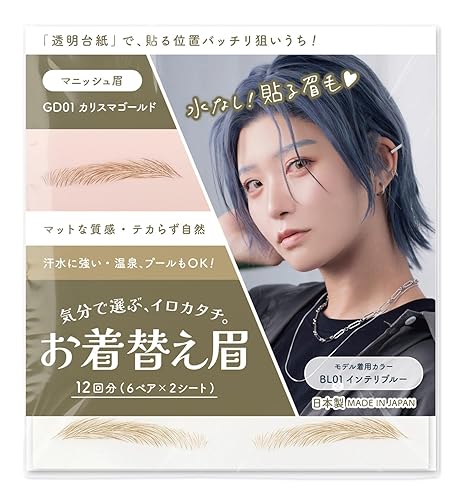 CLASSE Waterproof Eyebrow Tattoo Sticker, Colored for Cosplay, 12pair 4D Hair-Like temporary sticker on eyebrows, No water needed, peel off Painfuless, Simple Arch BL01 Blue