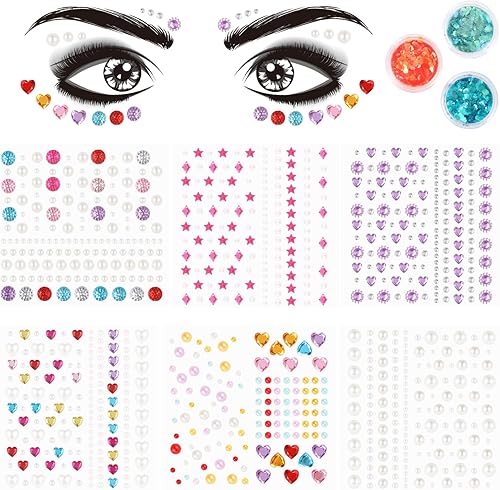 6 Sheets Eye Body Face Gems Jewels, Self-adhesive Rhinestone Makeup Stickers, with 3 Colors Face and Body Glitter Gel, Rhinestone Tattoos for Women, Girls Festival Accessory and Nail Art Decorat