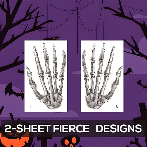 Horror Skeleton Hand Temporary Tattoos - Realistic Scary Glowing Bone Arm Stickers for Full Sleeve, Halloween & Cosplay, 2-Sheet
