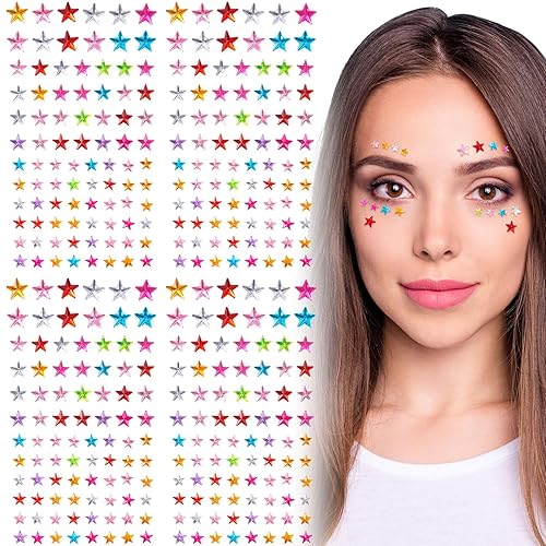 OIIKI Star Face Gems Stickers, 4 Sheets Face Rhinestones, Women Eye Star Jewels, Face Tattoo Makeup Stickers for Rave, Halloween, Parties, Festival, Daily Use (Colorful)