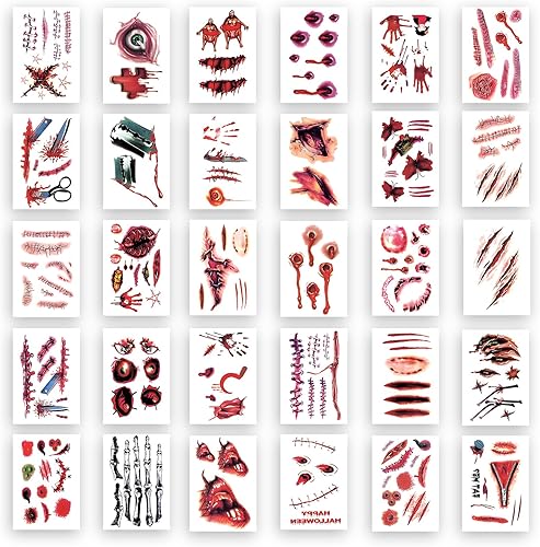 Halloween Body Face Scar Realistic, Temporary Tattoos Sticker, Paper Waterproof, for Holiday Party Day Fun Skin Color - A04