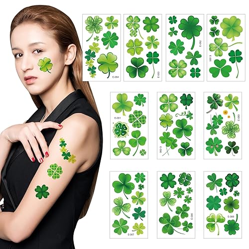 St. Patrick's Day Temporary Tattoos for Face 100+Pcs, Party Favors Lucky Shamrock Tattoo Irish Flag Tattoo 10 Sheets