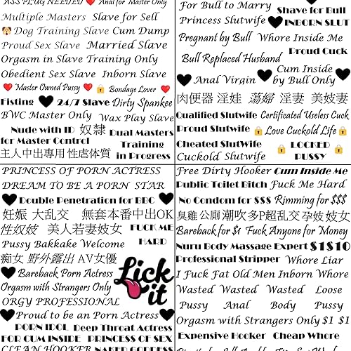 4 Sheets BDSM Cuckold Wife PORN Actress Hooker Temporary Tattoo Sticker Total 135counts(15X21cm) BBC Queen of Spades QoS Hardcore Words Phrases