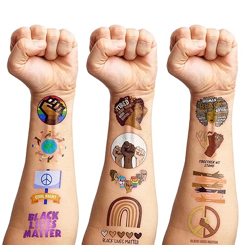 96 PCS Black History Month Black Lives Matter Day Civil Rights Temporary Tattoos Stickers Themed Birthday Party Decorations Favors Supplies Decor BLM African American Gifts For Kids Boys Girls Prizes