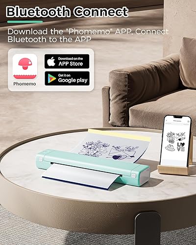 Phomemo M08F Wireless Tattoo Transfer Stencil Printer Green with 110pics of Tattoo Transfer Paper, Bluetooth Tattoo Printer Compatible with Android, iOS and PC