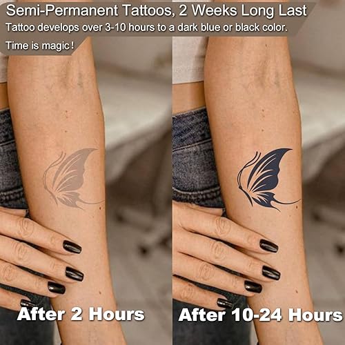 CHARLNET 88 Sheets Semi-Permanent Butterfly Tattoos for Women Girls - 2 Weeks Long Last Sexy Realistic Tiny Flowers Words Temporary Tattoos for Women Body Art Stickers