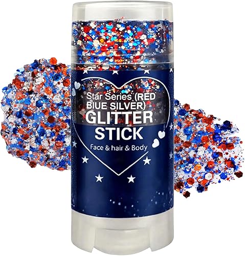 Red White and Blue Body Glitter,4th of July Outfits for Women Kids Patriotic Accessories,Face Hair Glitter Gel Makeup,USA Flag Holographic Long Lasting Chunky Sequins Glitter (Red White and Blue)