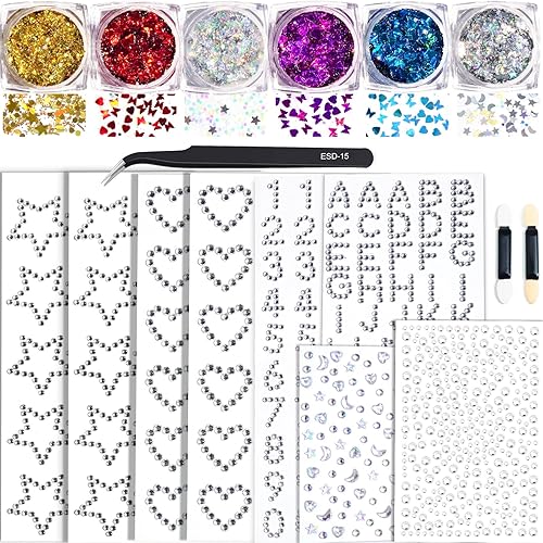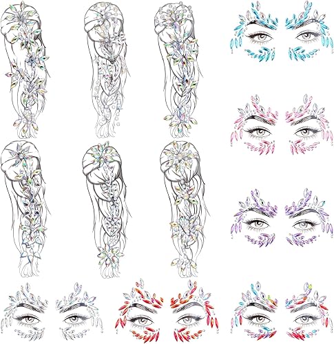 6 Sheets Acrylic Colorful Face Jewels Stickers and 6 Sheets Hair Gems Stickers Self Adhesive Round Teardrop Heart Rhinestone Decal for DIY Face Eyes Makeup Body Art Festival Party Decor