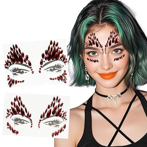Cat Face Gems Stickers Self-Adhesive Facial Patches Glittering Rhinestone Design 2-Pack Face Jewel Festival Headpiece Stick On (Green)