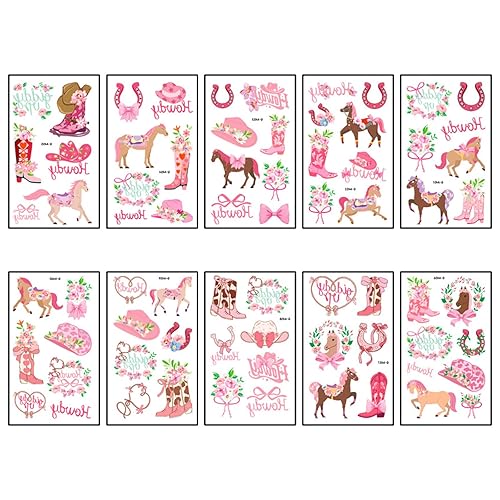 Hying 16 Sheets Cowgirl Temporary Tattoos Westworld Cowgirls Tattoos Stickers Waterproof Cartoon Makeup Face Tattoos for Birthday Party Decorations