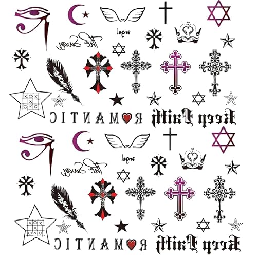 2 Sheets Tiny Small Temporary Tattoos For Women Men Finger Hands Neck Wrist Face, Cute Long Lasting Cartoon Fake Tattoo Stickers For Kids Boys Girls Cross Eye Wing Star Moon