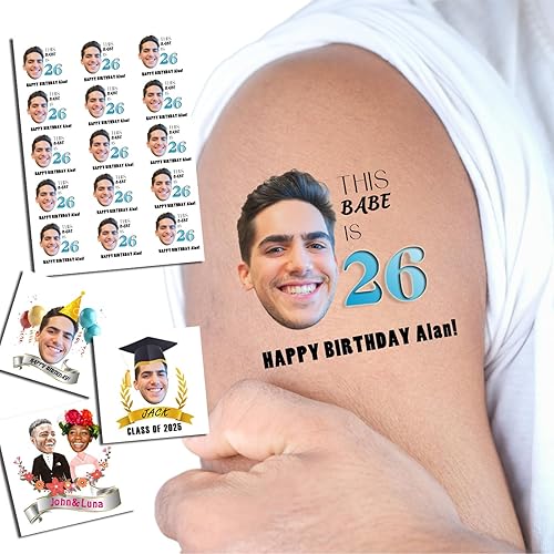 Custom Tattoos Temporary 1.2/1.6/1.9/2.4 Inches Personalized Temporary Tattoos Customized Name Logo Face Photo for Adults Wedding Birthday Valentine Xmas Party Fun Face Temporary Tattoos