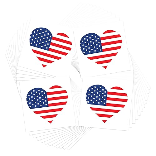 American Flag Temporary Tattoos/Perfect for 4th July - Memorial Day - Veterans Day/Patriotic Body Art/Skin Safe/Removable (American Flag 48pk)