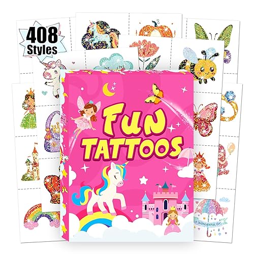 Partywind 408 Glitter Styles Temporary Tattoos for Boys Girls, 68 Sheets Fake Tattoo Stickers for Kids Birthday Party Supplies Favors, Surprise Goodie Bag Stuffers Prizes for Boys Girls