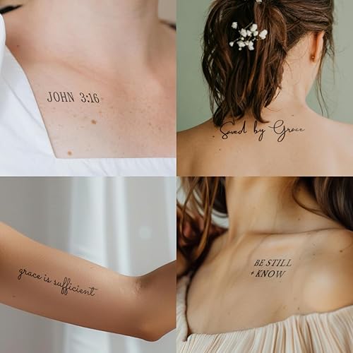 One Grace Strength in God Christian Temporary Tattoos - Inspirational Scriptures Selections - Christian Motivational Bible Verse Words and Cross Tattoos