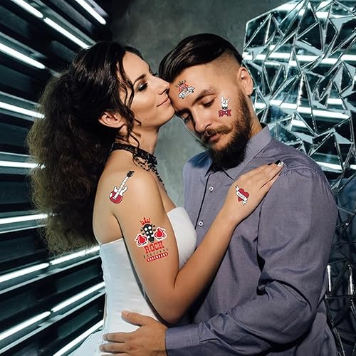 65 Pieces Rock N Roll Temporary Tattoos, Rock Star Birthday Party Decorations Supplies Favors Gifts, Born to Rock Tattoo Stickers for Kids Boys Girls Classroom School Prizes Rewards