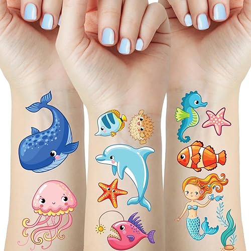 32Pcs Ocean Animals Temporary Tattoos for Kids, Under the Sea Themed Birthday Party Decorations Supplies Party Favors, Sea Animal Tattoos Stickers for Girls Boys Baby Shower