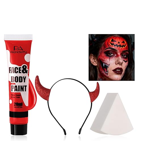 Orange Face Body Paint - Professional Water-Based Non-Toxic Body Painting for Pumpkin Tiger Halloween SFX Cosplay, Full Coverage Washable Cream for Costume Party Theater Stage Performance