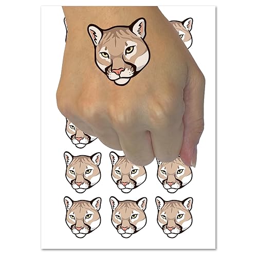 Cougar Head Mountain Lion Temporary Tattoo Water Resistant Fake Body Art Set Collection - 54 1" Tattoos (1 Sheet)