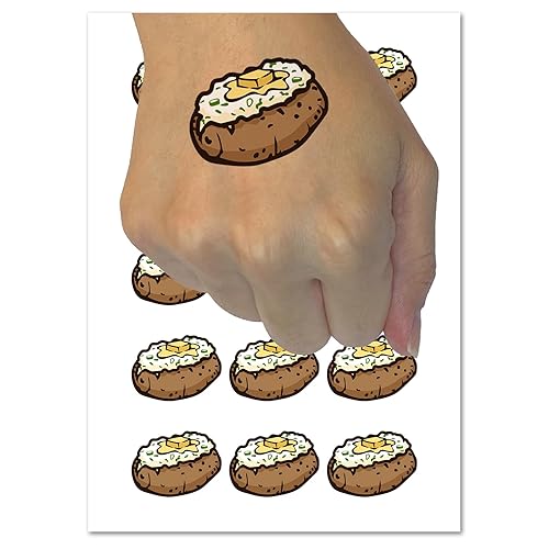 Hot Baked Potato with Chives and Butter Temporary Tattoo Water Resistant Fake Body Art Set Collection - 54 1" Tattoos (1 Sheet)