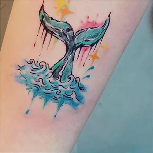 2pcs Watercolor Style Ocean Wave Whale Tail Temporary Tattoo For Men And Women, Waterproof And Long-lasting Stickers, Fake Tattoos