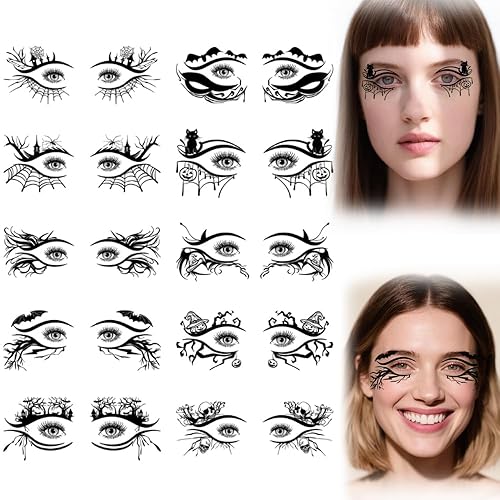 10 Pairs Halloween Spider Eye Tattoo Stickers, Halloween Eye Temporary Tattoos for Adult, Eye Scary 3D Web Tattoo Stickers, Skull Bat Eyeliner Fake Tattoos Halloween Makeup Accessory (Style E)