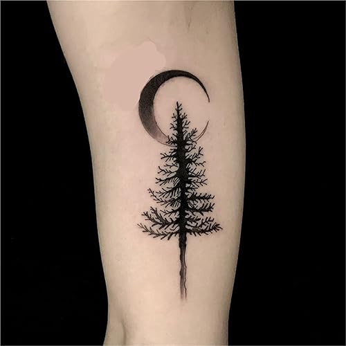 2pcs Dark Moon Pine Tree Arm Temporary Tattoos For Women, Waterproof And Long-lasting Stickers, Fake Tattoo