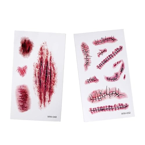 Hoyuwak Waterproof Scar Decals for Halloween - Realistic Fake Wounds Temporary Tattoos for Face and Body Makeup - Sweat Resistant Fun Party Supplies for Men and Women (2 Sheets)