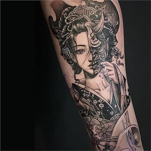 2pcs Geisha Mask Arm Juice Temporary Tattoo Stickers For Men And Women, Semi Permanent, Non Reflective, Waterproof, Lasting For 2 Weeks, Fake Tattoos