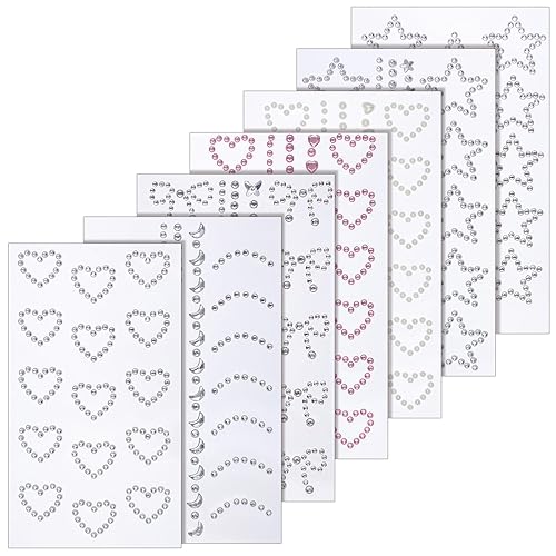7 Sheets Face Gems Stickers Self Adhesive 3D Star Heart Moon Shape Jewels Sparkly Face Rhinestone Stickers Stick on Gems Pearl Rhinestones Sticker Faces Hair Body Crafts Halloween Festival Decor