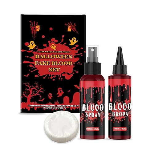 Fake Blood Makeup - Fake Blood Kit,Face Paint Spray Drops Cleaning Soap for Women Men Vampire Zombie Cosplay Dress up Masquerade Props,3pack
