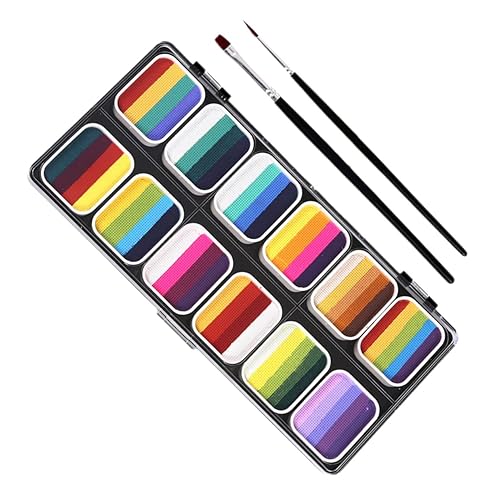 Color Gradient Face Paint Kit with Matte and Pearl Rainbow Shades Water-activated Non-toxic Body Paint for Halloween Makeup Sports and Fashion Shows Includes Brushes and Separate