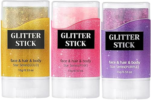 Liplaya Glitter Stick, Glitter Stick Hair and Body, Mermaid Glitters Face Paint, Red White Blue for 4th of July, Holographic Sequins Paint Sparkling for Face/Body/Hair/Lip, Waterproof (A4)