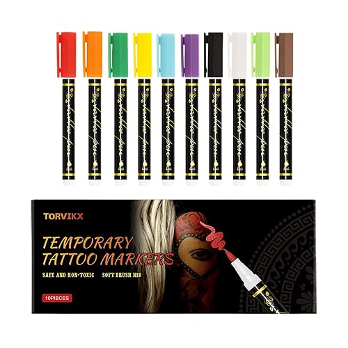 Body Marker, 10 Colors Skin Friendly Face Paint for Role Play, Safe Costume with Fine Tip, Makeup Markers for Teens, Adults, Birthday Party, Cosplay, Festival, Gathering, 2.56x1.57in