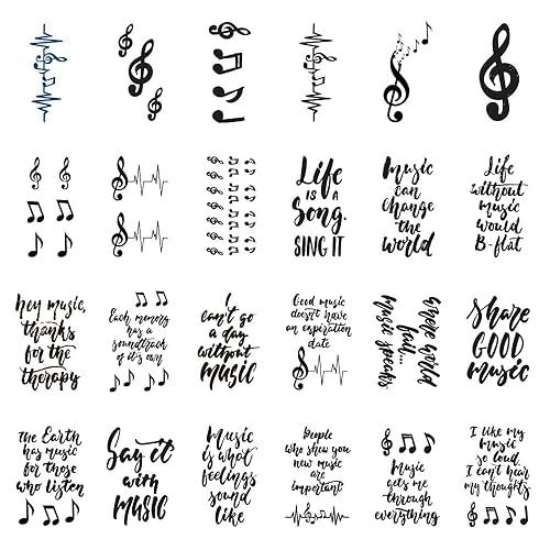 Black Music Temporary Tattoo Sticker Waterproof Adult Men Women Hand Arm Shoulders Body Art 10.5X6cm Set of 24 (SF284)