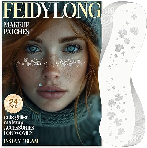 Glitter Freckles, 24 PCS Sliver Face Glitter Makeup Accessories, Face Glitter Tattoos Makeup Patches for Women, Fake Freckles for Festival Rave